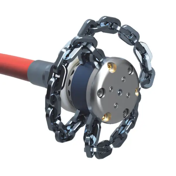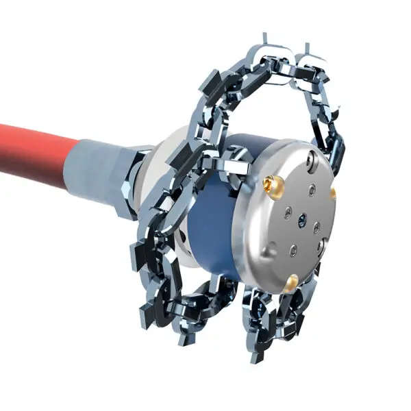 • use chains with hard bits in steel pipes or to roughen the pipe for rehab purposes