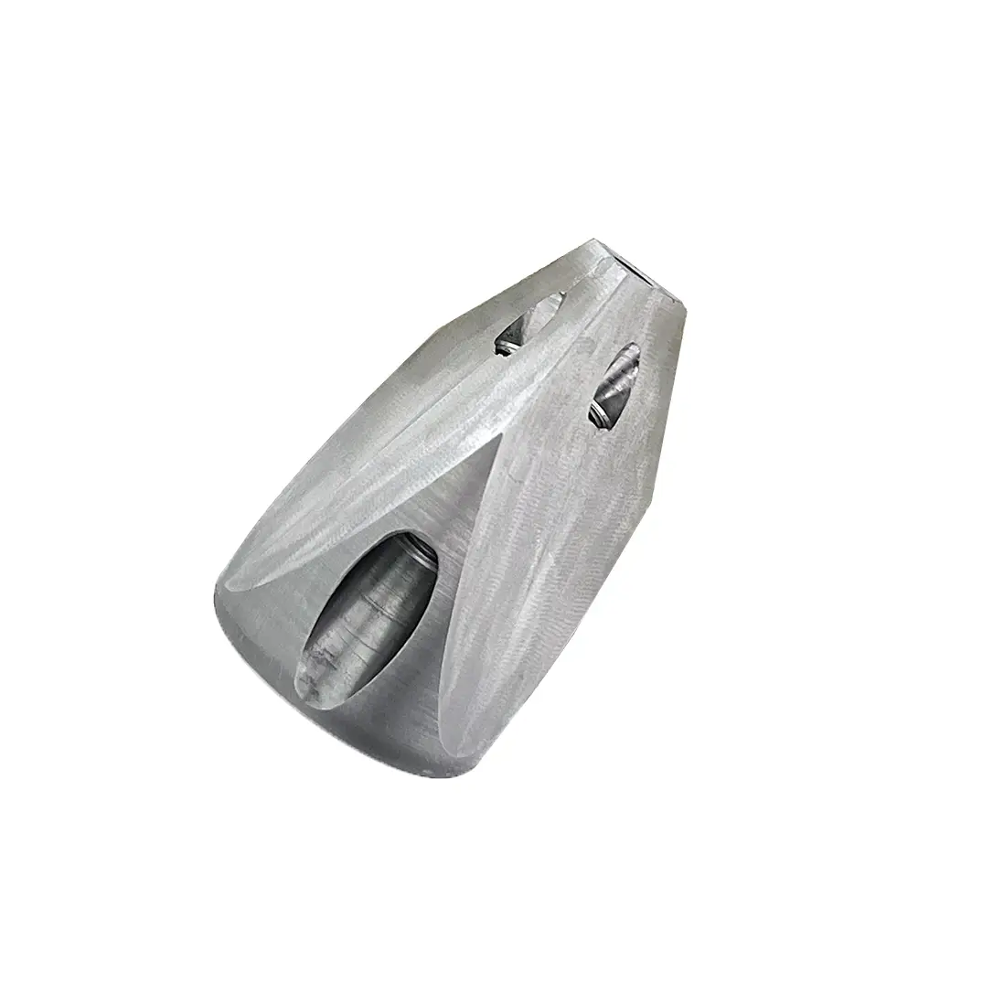 The design is like the tip of an arrow and the multiple jets on the front force a way through the blockage.