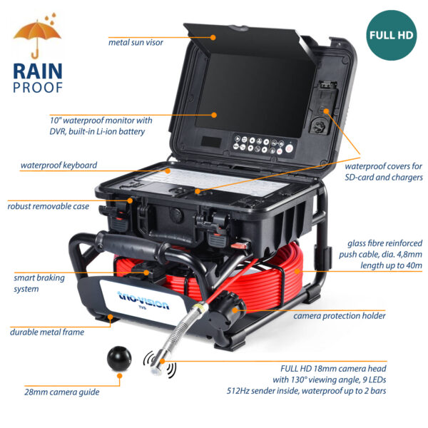 The new TVS18 mini HD mini inspection camera now features a waterproof monitor box, making it the ideal inspection camera for pipes and drains with a diameter of DN32 to DN75, which can be used both indoors and outdoors in all weather conditions.